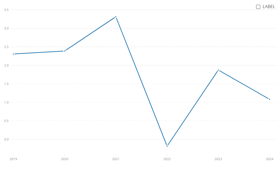 Nigeria’s portfolio investment inflows remained strong in the early years, rising from $2.3 billion in 2019 to about $2.4 billion in 2020, before climbing further to $3.3 billion in 2021. The sharp dip to roughly $0.1 billion in 2022 reflects global tightening and domestic FX constraints rather than a loss of investor interest. Crucially, inflows rebounded quickly to $1.85 billion in 2023, showing renewed confidence as reforms began taking effect. By 2024, inflows stabilised at around $1.1 billion, indicating that foreign investors are re-entering the market gradually. Overall, the chart highlights Nigeria’s ability to recover from shocks and regain investor attention as macro-financial reforms improve clarity and market access.